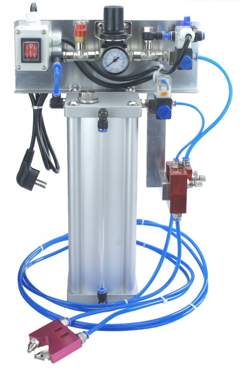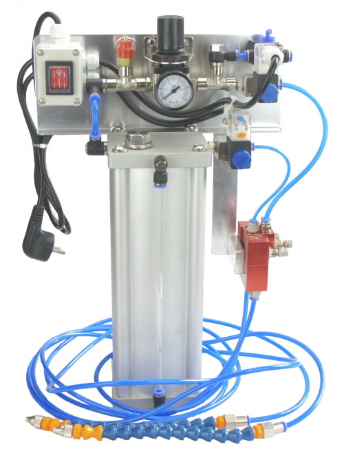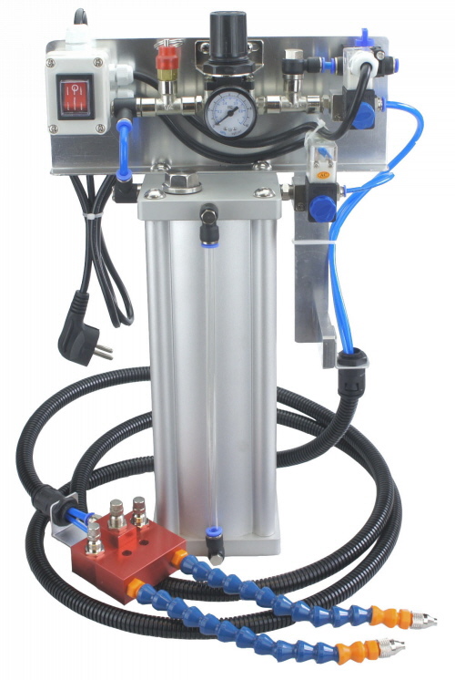 Das Einschalten der Schmiermittel- und Druckluftzufuhr erfolgt bei diesem System elektrisch über Magnetventile. Das Schmiersystem kann somit automatisiert werden, d.h. über eine CNC Steuerung ein- und ausgeschaltet werden.