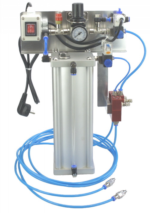Durch den niedrigen Luftdruck wird ebenfalls wesentlich weniger Druckluft benötigt. Für die Druckluftversorgung reicht ein kleiner Kompressor.